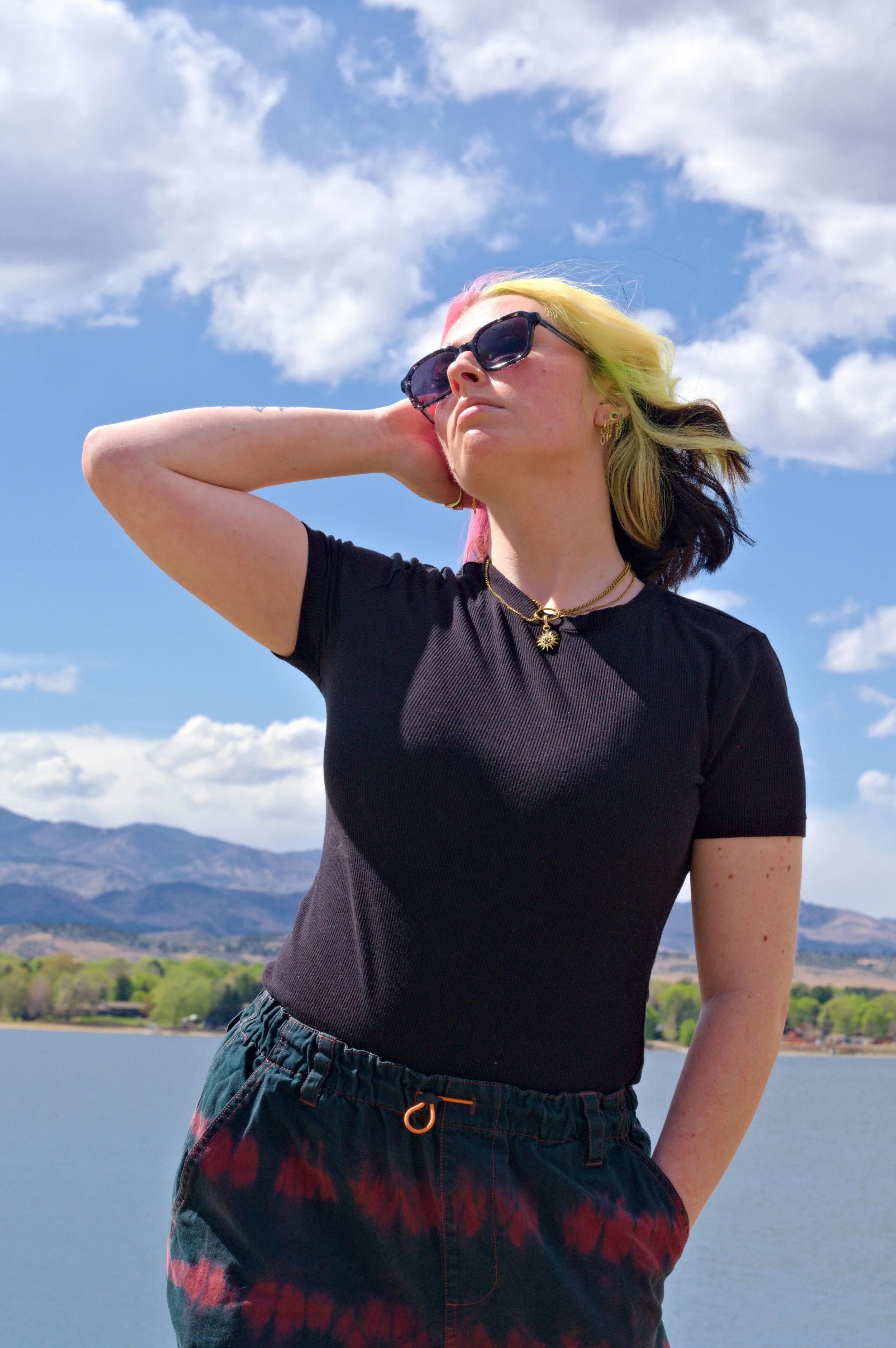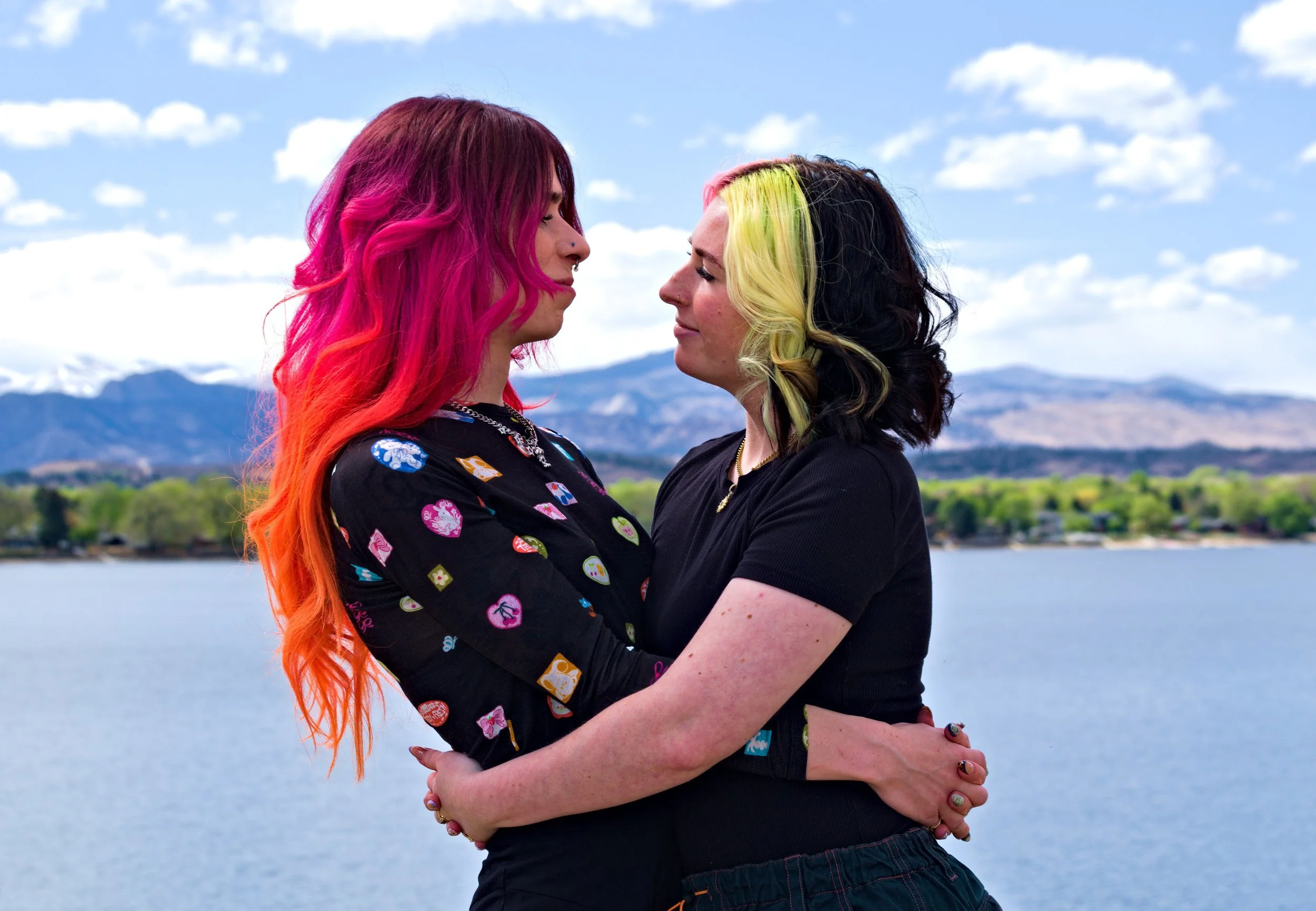 On April 16th 2026, Corinna Maeve Deardorff became Corinna Maeve Hollingsworth. After a year marked by change and turmoil following their escape from their home in Texas, Corinna and Sydney tied the knot in Loveland, Colorado, with the quiet backdrop of the mountains and the low hum of fluorescent lights at the county clerk’s office serving as witnesses. To commemorate the occasion, Syd and Corinna “locked” their love at the love lock sculpture on Lake Loveland and did a photoshoot featuring clothing from a designer they both adore, as well as a skirt Corinna embroidered with her classic TWN design.